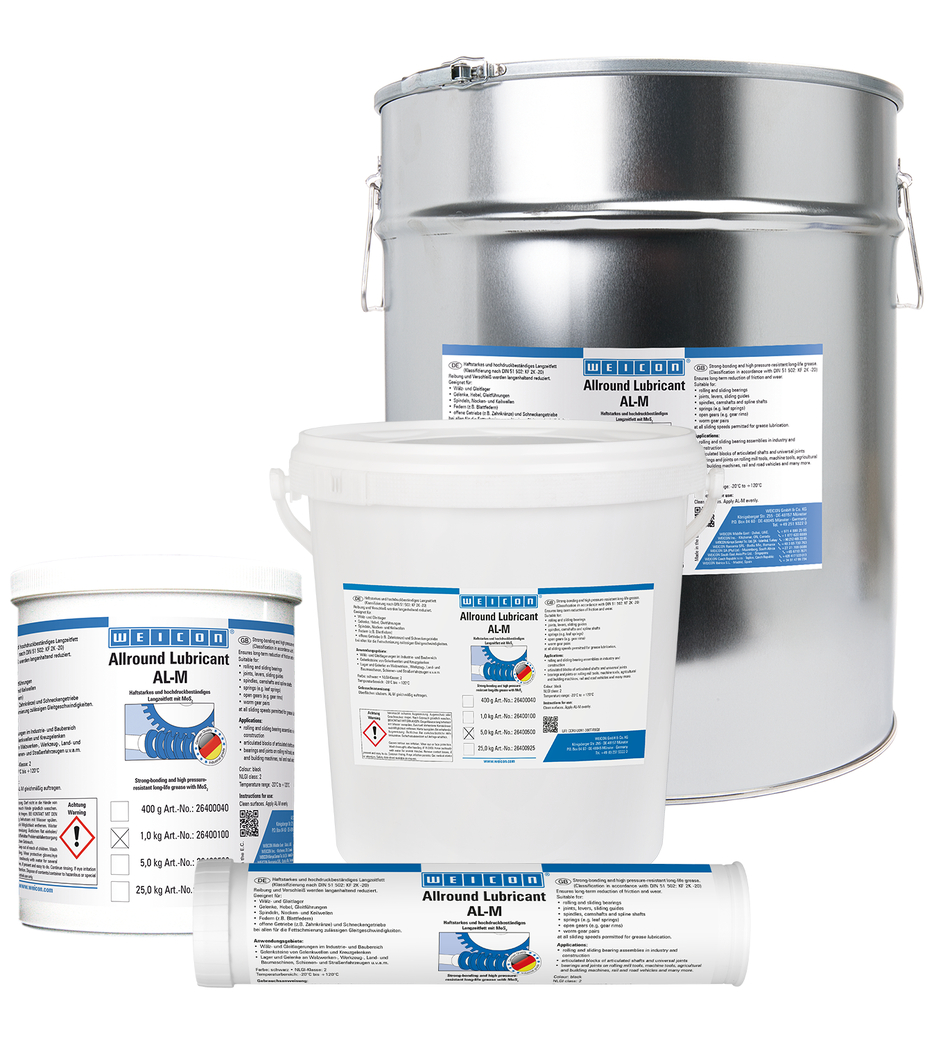 WEICON AL-M długotrwale redukuje tarcie i zużycie ścierne i jest przeznaczony do smarowania łożysk kulkowych, ślizgowych, przegubów, dźwigni, prowadnic ślizgowych, wałków, trzpieni, wałów rozrządu i klinowych oraz sprężyn, przekładni otwartych i ślimakowych dla wszystkich prędkości obrotowych przewidzianych do smarowania.