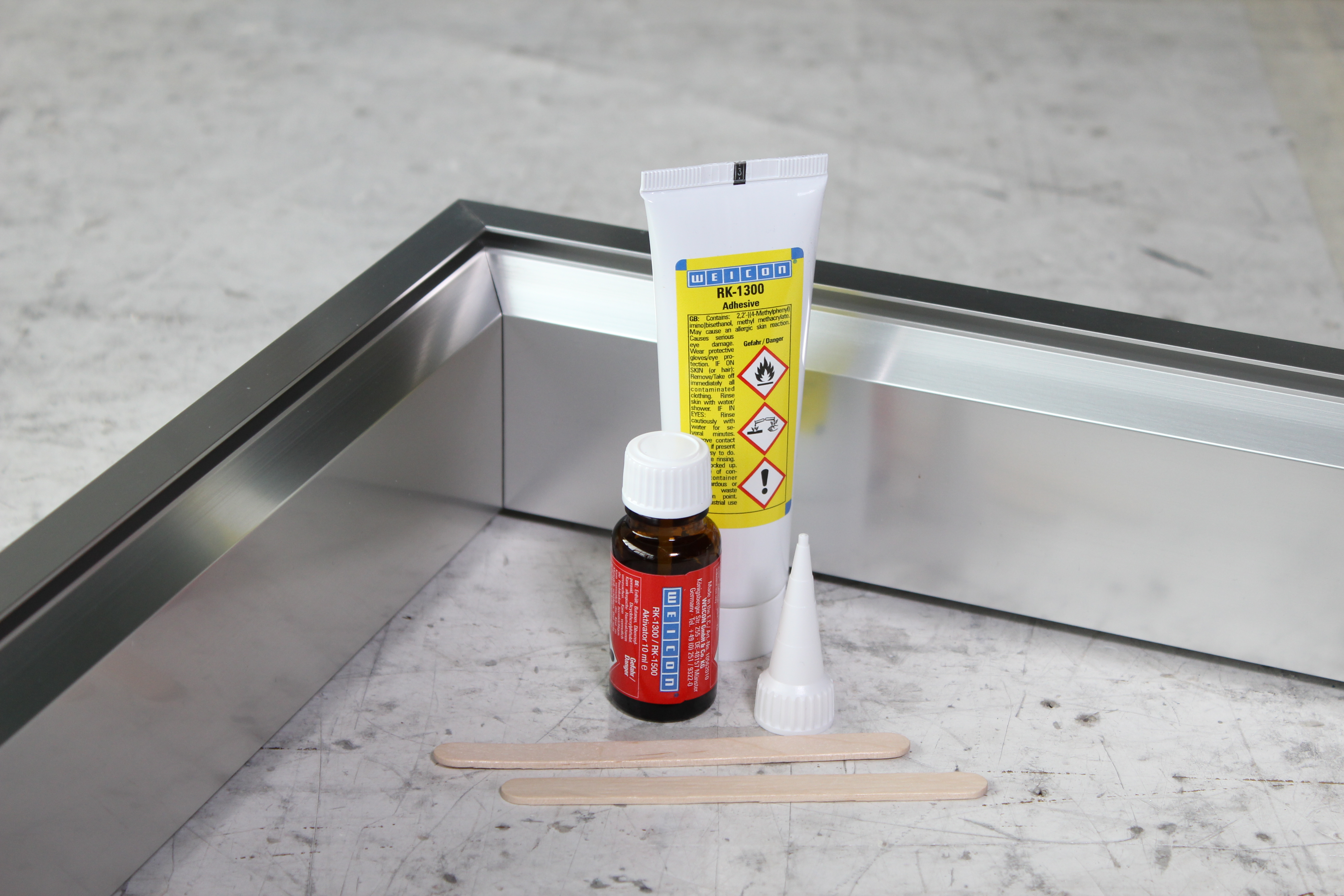 Klej do łączenia ze sobą aluminium i innych metali lekkich. Klej WEICON Aluminium Minute Adhesive może być stosowany do wypełniania pęknięć i dziur w aluminiowych obudowach, a także do naprawy kół ze stopów lekkich. Aluminium Minute Adhesive to niskozapachowy, dwuskładnikowy klej epoksydowy wypełniony aluminium. Jest odporny na wysokie temperatury do +180 °C i szybko utwardza się w temperaturze pokojowej. Po utwardzeniu klej można obrabiać (piłować, wiercić, frezować). Aluminium Minute Adhesive wypełnia szczeliny i jest odporny na ściekanie (tiksotropowy) oraz ma bardzo wysoką wytrzymałość na rozciąganie i uderzenia. Aby uzyskać optymalną przyczepność, powierzchnie przeznaczone do klejenia powinny być suche i wolne od tłuszczu lub zanieczyszczeń. Skrobanie lub szlifowanie powierzchni przed czyszczeniem pomaga zapewnić dobrą przyczepność.