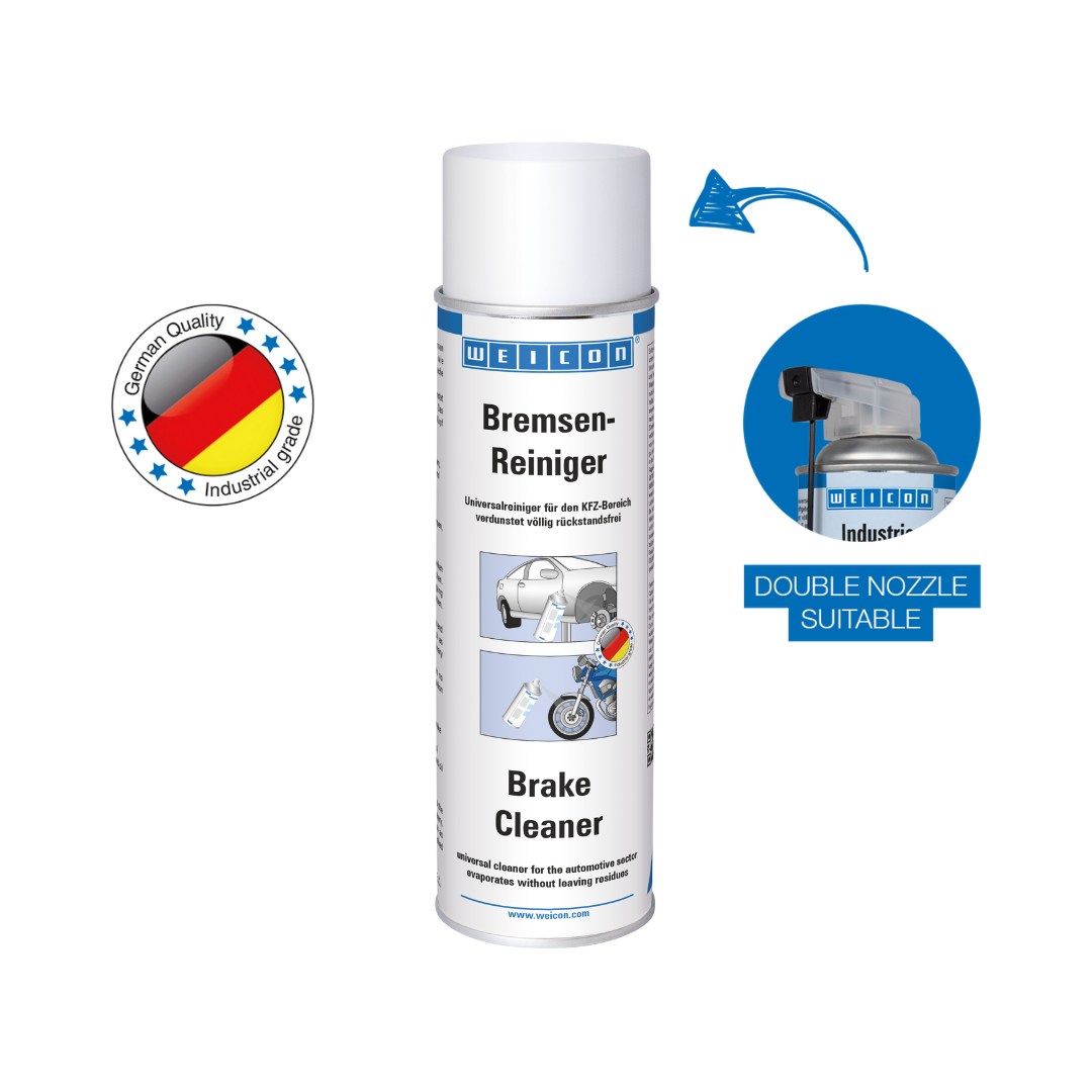 Wielozadaniowy zmywacz i odtłuszczacz do przemysłu motoryzacyjnego WEICON Brake Cleaner jest zmywaczem uniwersalnym motoryzacyjnym, zmywa i odtłuszcza powierzchnie odparowując bez pozostałości. Brake Cleaner czyści i odtłuszcza wszelkie powierzchnie metalowe, szklane, ceramiczne i wiele tworzyw bez problemu usuwając pozostałości smarów, olejów i inne zanieczyszczenia. WEICON Brake Cleaner może być stosowany na hamulcach (bębny i tarcze, okładziny, klocki hamulcowe, cylindry, sprężyny, tuleje), sprzęgłach (okładziny sprzęgła i części sprzęgła) i na częściach silnika (gaźniki, pompy benzynowe i olejowe, przekładnie itp.).
