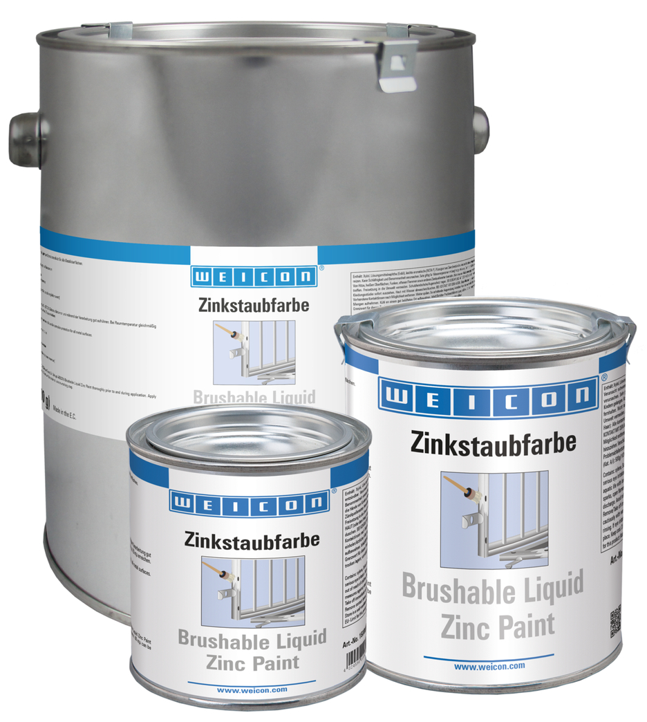 WEICON Brushable Zinc Paint zapewnia aktywną i trwałą ochronę antykorozyjną wszystkich powierzchni metalowych. Brushable Zinc Paint wykorzystuje sferyczne pigmenty metalowe o wysokiej koncentracji i czystości. Wysoka zawartość cynku w powłoce zapewnia właściwą ochronę katodową. W przypadku uszkodzenia powłoki cynk, reagując z wilgocią, formuje warstwę tlenku cynku, która w dalszym ciągu chroni materiał bazowy przed korozją.