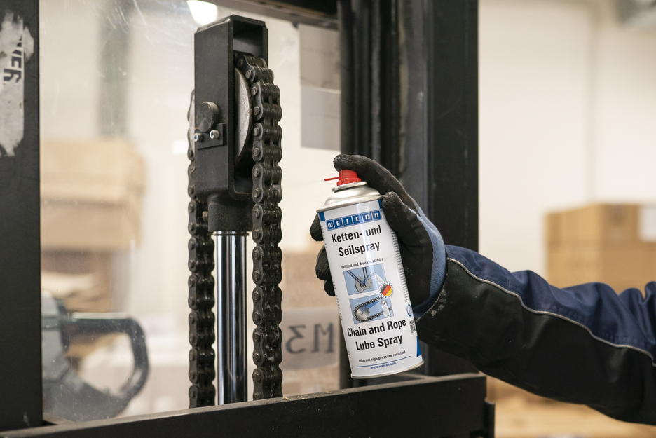 WEICON Chain and Rope Lube Spray jest syntetycznym, przezroczystym smarem do smarowania zewnętrznego i wewnętrznego mocno obciążonych łańcuchów i lin. Chain and Rope Lube Spray charakteryzuje się wyjątkową przyczepnością, odpornością na zgniot, właściwościami pełznymi. Wypiera wodę, zapobiega rozciąganiu, tarciu i zużyciu materiału oraz wycisza pracę podzespołów. WEICON Chain and Rope Lube Spray może być stosowany na wszystkich typach łańcuchów i lin, sworzniach przenoszących napęd, kołach zębatych, w przekładniach ślimakowych, szybko pracujących częściach maszyn, złączach, przegubach, rolkach, łożyskach kulkowych oraz sprężynach w wielu aplikacjach przemysłowych.