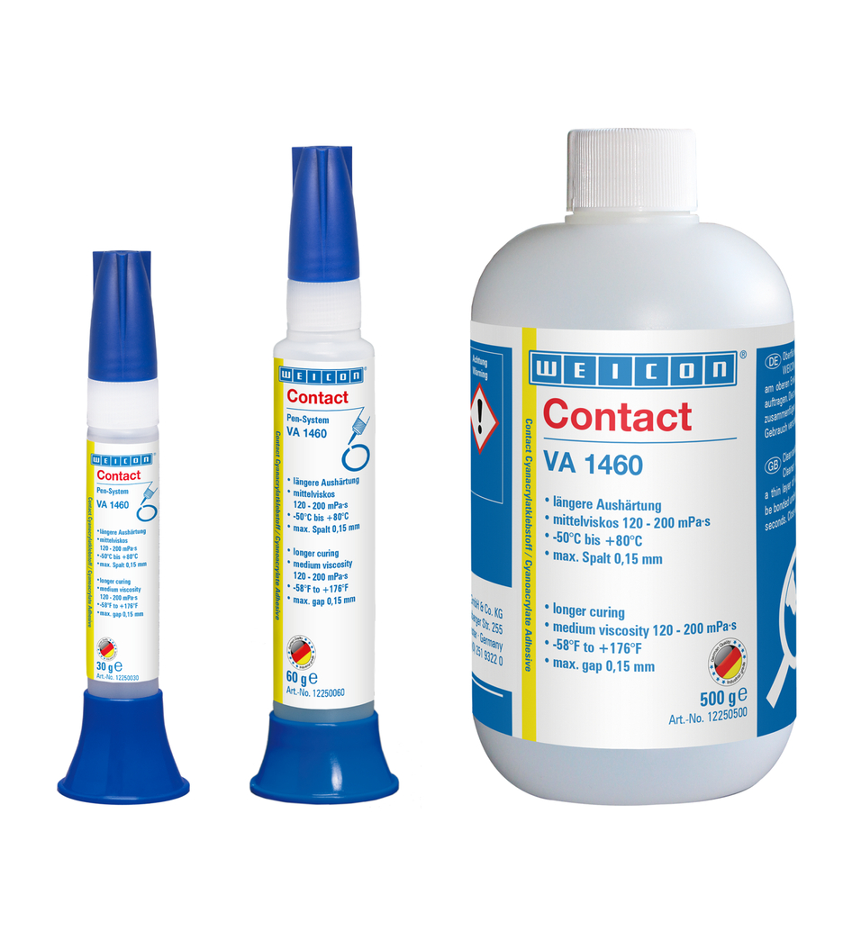 WEICON Contact VA 1460 posiada średnią lepkość i zredukowany efekt wykwitów. Utwardza się średnio szybko, niemal nie emituje zapachu a także jest mniej podatny na wilgoć po utwardzeniu. Przeznaczony jest do wykonywania czystych i estetycznych spoin na różnych materiałach.