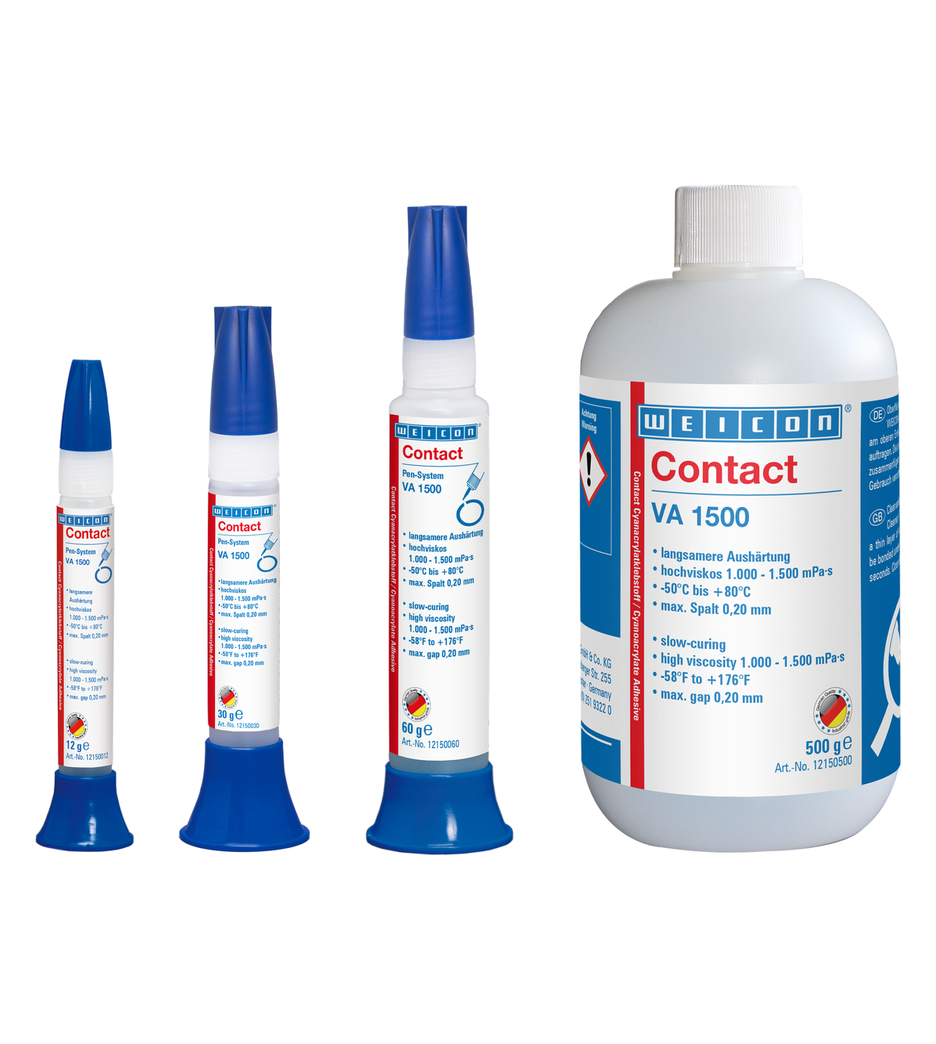 WEICON Contact VA 1500 jest klejem półpłynnym o dłuższym czasie utwardzania. Szczególnie polecany jest do klejenia gumy i tworzyw a także materiałów porowatych i chłonnych, takich jak drewno, korek, skóra i ceramika.
