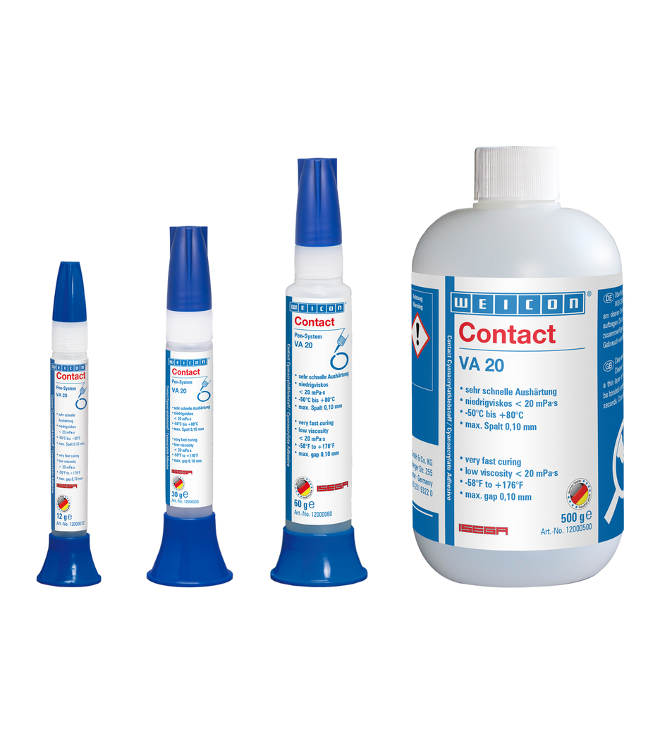 WEICON Contact VA 20 posiada bardzo niską lepkość i bardzo krótki czas utwardzania. Przeznaczony jest do łączenia gumy, tworzyw oraz precyzyjnie pasowanych połączeń metal/tworzywo.