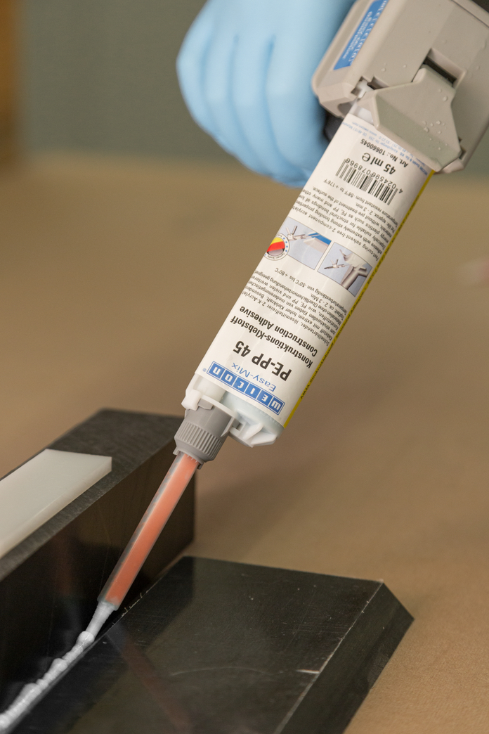 "WEICON Easy-Mix PE-PP 45 to dwuskładnikowy klej budowlany na bazie akrylanu metylu. Jest szczególnie odpowiedni do strukturalnego, wysokowytrzymałego klejenia niskoenergetycznych tworzyw sztucznych, takich jak PE, PP i TPE. Nie wymaga obróbki wstępnej, ponieważ podkład "zintegrowany" z klejem aktywuje powierzchnie i umożliwia uzyskanie połączenia o wysokiej wytrzymałości. Pistolet dozujący Easy-Mix D 50 jest wymagany do przetwarzania produktów Easy-Mix w pojemniku 50 ml".