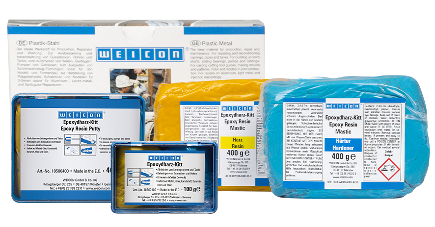 WEICON Epoxy Resin Putty jest 2-komponentową masą nie zawierającą metalu. Produkt jest wielofunkcyjny. Nadaje się do napraw i regeneracji odlewów, regeneracji wałów, łożysk ślizgowych, pomp i obudów, odnawiania uszkodzonych gwintów, wykonywania szablonów i modeli oraz do napraw aluminium, metali lekkich i form wtryskowych. Masa może być stosowana do uszczelniania rur przewodowych i zbiorników oraz do mocowania śrub i haków. Nadaje się do usuwania uszkodzeń korozyjnych i wżerów lub do naprawy dziur i otworów. Epoxy Resin Putty szczególnie dobrze przylega się do wszystkich metali, a także do ceramiki, szkła, kamienia, betonu, drewna, gumy i wielu tworzyw sztucznych. Po utwardzeniu WEICON Epoxy Putty nadaje się do obróbki mechanicznej, lakierowania i jest odporny na działanie benzyny, oleju, estrów, słonej wody oraz większości kwasów i zasad. Posiada wysoką odporność na temperaturę do +200 °C (+392 °F), jest niemagnetyczny i niekorozyjny. Dzięki prostej proporcji mieszania 1:1 (wagowo i objętościowo), żywicę i utwardzacz bez problemu można dozować w wymaganej proporcji. WEICON Epoxy Resin Putty może być wykorzystywany przy produkcji maszyn i urządzeń, form i modeli oraz w wielu innych aplikacjach przemysłowych.