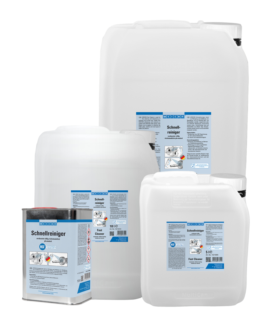 WEICON Fast Cleaner posiada atest NSF dla sektora spożywczego, stąd może być stosowany jako zmywacz i odtłuszczacz przy usuwaniu zanieczyszczeń powstających w trakcie prac warsztatowych jak również do usuwania klejów w sektorach spożywczym, farmaceutycznym i kosmetycznym. Fast Cleaner służy do zmywania i odtłuszczania powierzchni klejonych lub uszczelnianych przy pomocy produktów WEICON jak i tych przeznaczonych do powlekania powłokami metalicznymi WEICON. Fast Cleaner posiada neutralne pH oraz dobrą kompatybilność z materiałami, stąd może być stosowany zarówno na metalach, szkle, ceramice, jak i większości gum oraz tworzyw.
