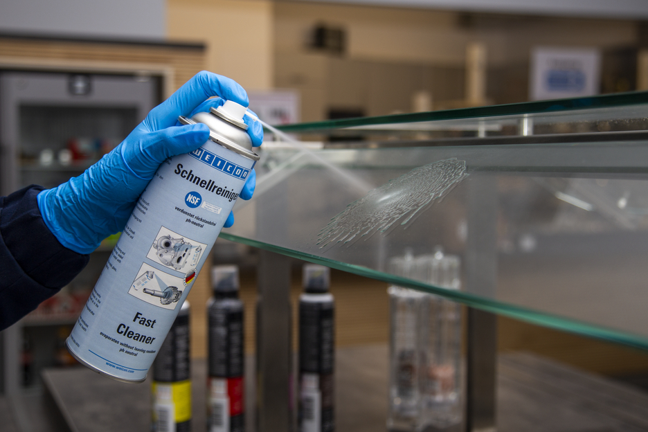 WEICON Fast Cleaner posiada atest NSF dla sektora spożywczego, stąd może być stosowany jako zmywacz i odtłuszczacz przy usuwaniu zanieczyszczeń powstających w trakcie prac warsztatowych jak również do usuwania klejów w sektorach spożywczym, farmaceutycznym i kosmetycznym. Fast Cleaner służy do zmywania i odtłuszczania powierzchni klejonych lub uszczelnianych przy pomocy produktów WEICON jak i tych przeznaczonych do powlekania powłokami metalicznymi WEICON. Fast Cleaner posiada neutralne pH oraz dobrą kompatybilność z materiałami, stąd może być stosowany zarówno na metalach, szkle, ceramice, jak i większości gum oraz tworzyw.