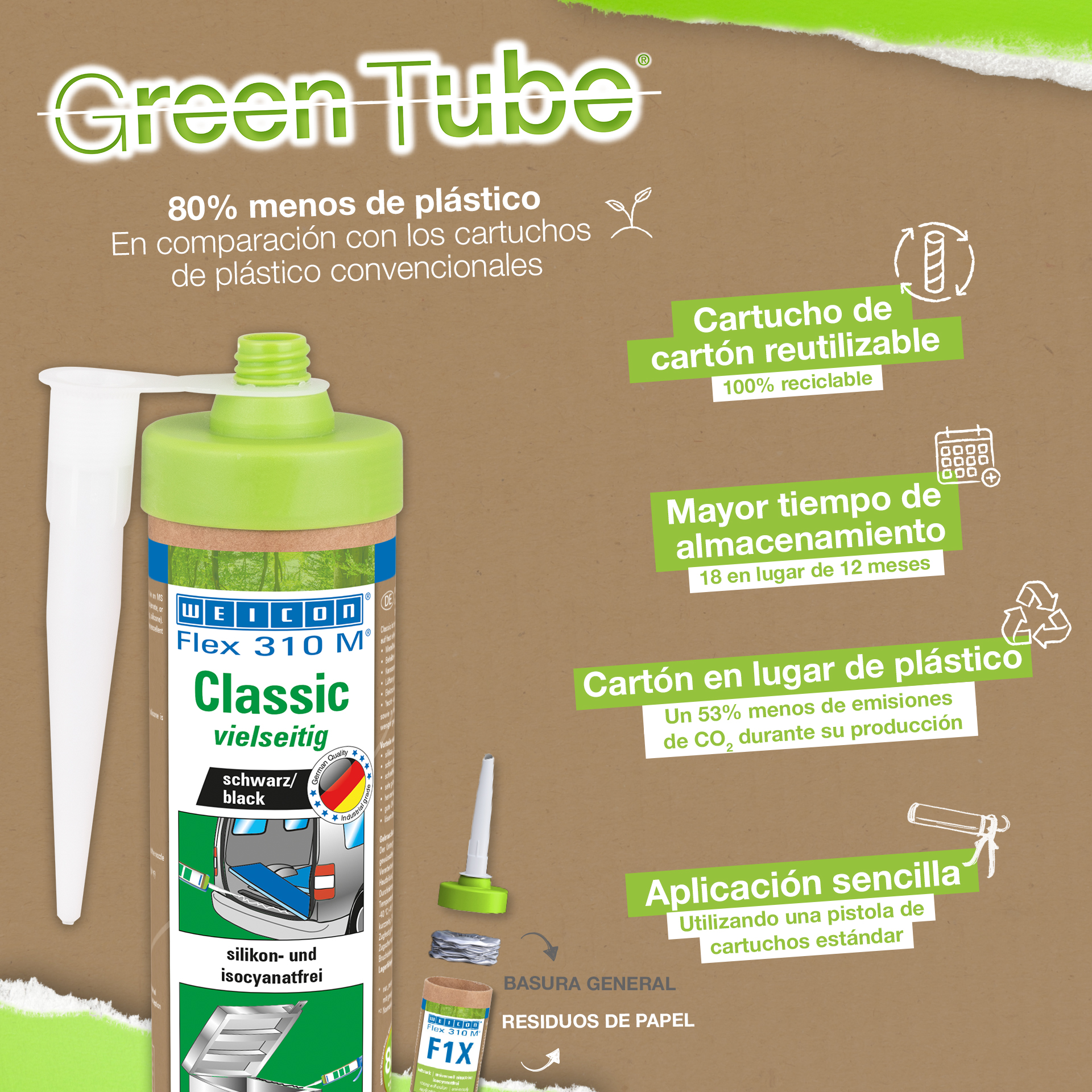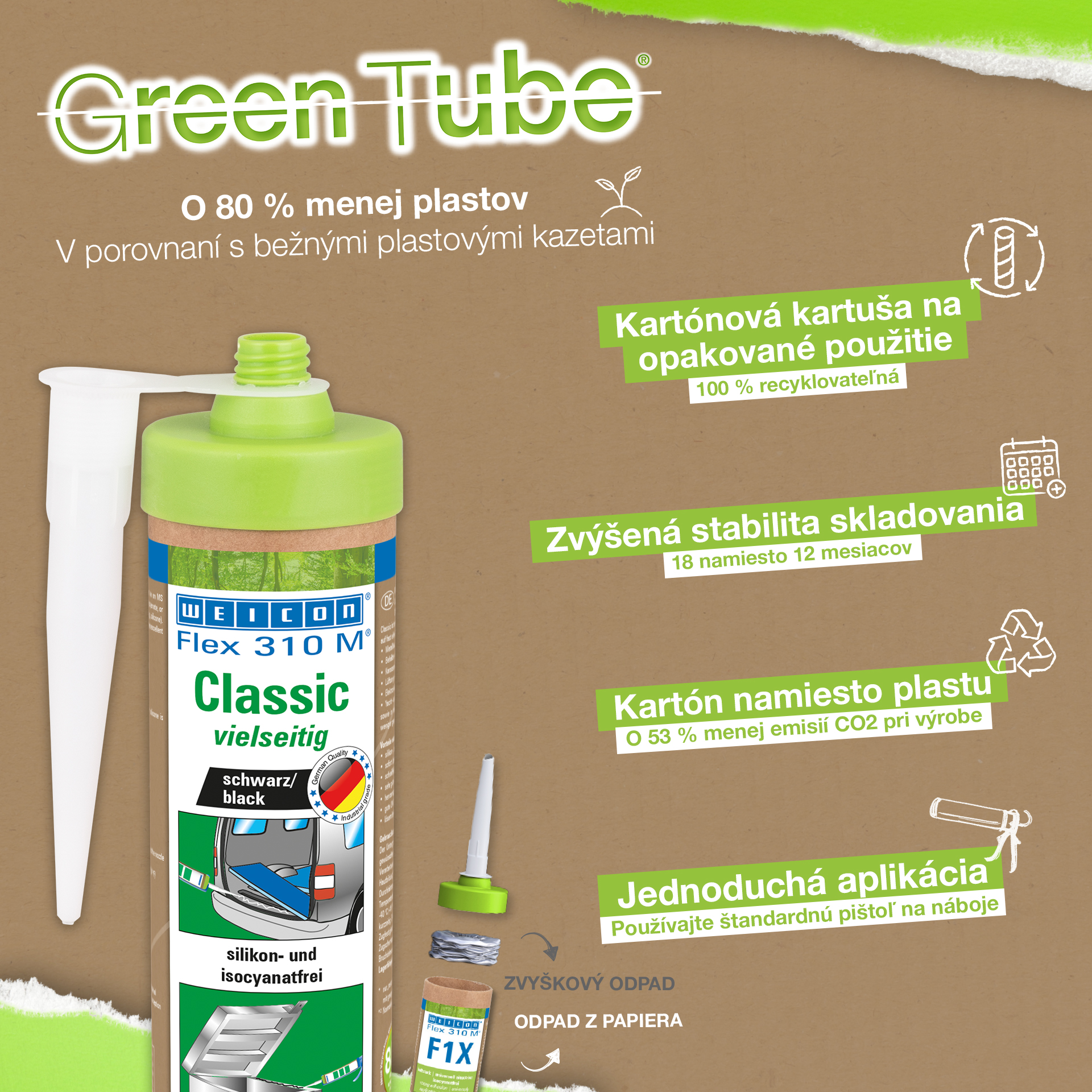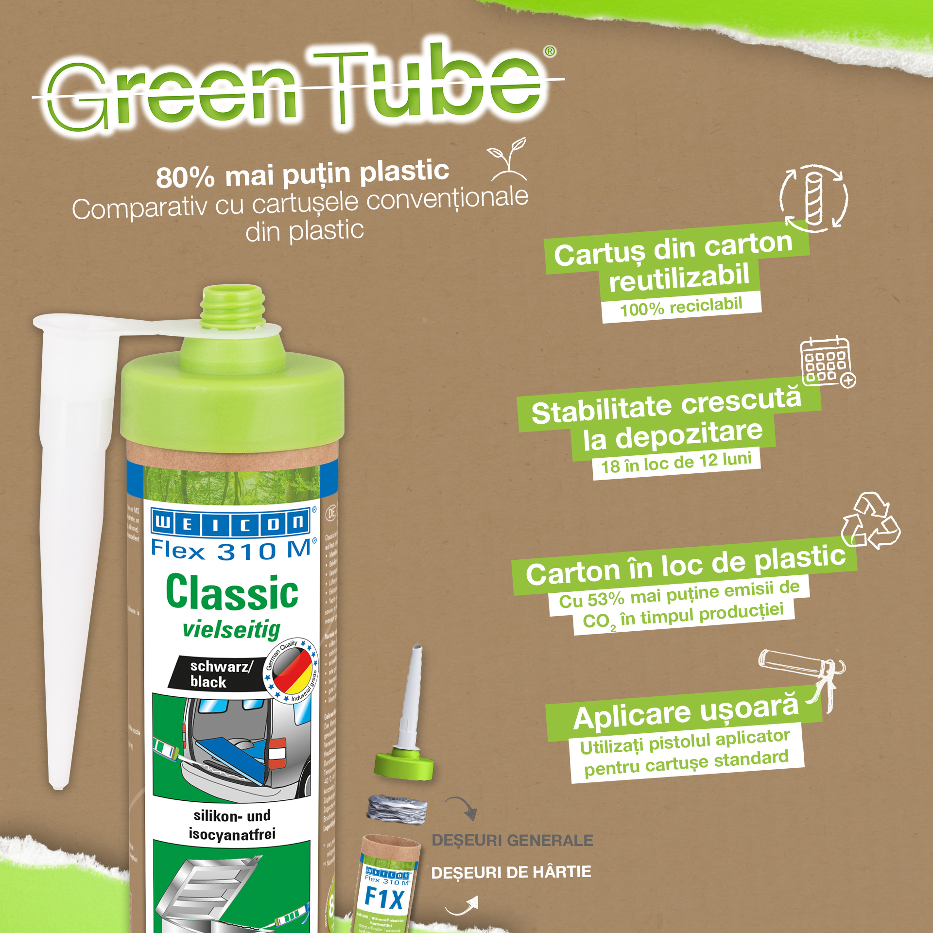 WEICON Flex 310 M® Classic jest mocnym, dającym się malować (na mokro) elastycznym klejem o bardzo dobrej odporności na starzenie oraz na promieniowanie UV, wodę słodką i słoną. Nie zawiera silikonów, izocyjanianów, halogenów ani rozpuszczalników. Produkt posiada atest ISEGA dopuszczający do stosowania jako klej w sektorze przetwórstwa żywności. Flex 310 M® Classic jest elastycznym klejem na bazie MS polimerów i przeznaczonym do łączenia metali, wielu tworzyw, ceramiki, szkła i kamienia. Flex 310 M® Classic może być stosowany w budowie pojemników i urządzeń, kontenerów, karoserii i pojazdów, konstrukcjach statków, jachtów i łódek, systemach klimatyzacji i wentylacji, przemyśle energetycznym i elektrycznym oraz wszędzie tam, gdzie nie znajdują zastosowania silikony.