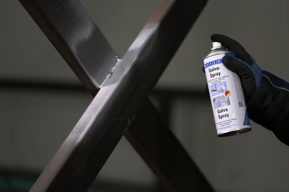 WEICON Galva Spray jest trwałą powłoką ochronną dla wszystkich powierzchni metalowych. Szybko schnie, świetnie przylega i chroni metale przed rdzą oraz korozją. Produkt wykazuje odporność na wodę słoną i słodką oraz temperatury do +300 °C. Powierzchnie pokryte za pomocą WEICON Galva Spray nie wykazuj śladów korozji nawet po 450 godzinach testu solankowego wg DIN EN 9227. WEICON Galva Spray znajduje zastosowanie przy naprawach elementów ocynkowanych ogniowo w odpowiadającej barwie, jest wysoce skutecznym podkładem antykorozyjnym, np. przy malowaniu karoserii, może być wykorzystywany do powlekania sekcji po spawaniu i wierceniu oraz jako warstwa przewodząca przy spawaniu punktowym.