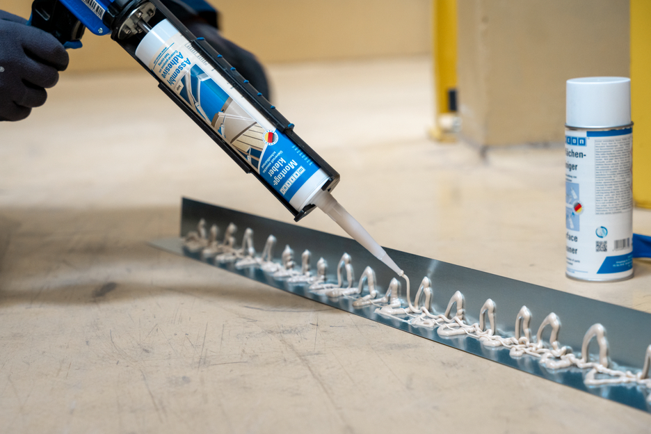 Szybki i mocny klej kontaktowy na bazie kauczuku syntetycznego do klejenia wewnątrz i na zewnątrz pomieszczeń. Elastyczny 1-komponentowy klej montażowy może być stosowany na wielu materiałach, takich jak: drewno i płyty z włókien drzewnych, płyty MDF i OSB, płyty dekoracyjne, stal, aluminium, tworzywa sztuczne, PCV, tynki, płyty gipsowe, ceramika, mur, płytki, kamień i beton. Klej nadaje się do szybkiego i trwałego mocowania listew przypodłogowych, paneli, elementów podłogowych, okładzin ściennych,parapetów okiennych, progów drzwiowych, drewnianych ram drzwiowych, profili dekoracyjnych i wielu innych.