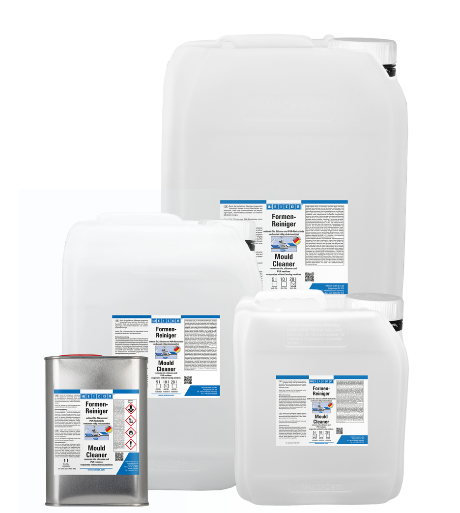 Mould Cleaner jest specjalnym zmywaczem na bazie aktywnych rozpuszczalników organicznych. Szybko usuwa woski, silikony, oleje, nieutwardzone resztki PUR i inne zanieczyszczenia z form stalowych, aluminiowych i wykonanych z tworzyw.