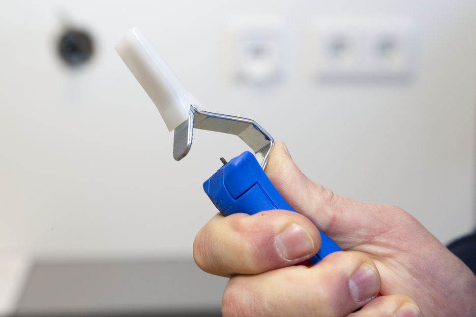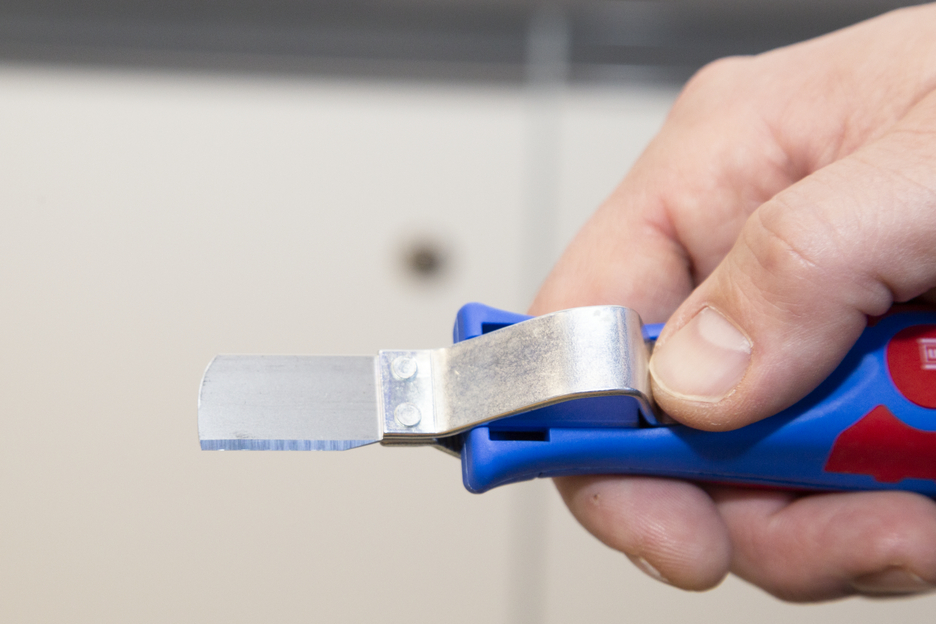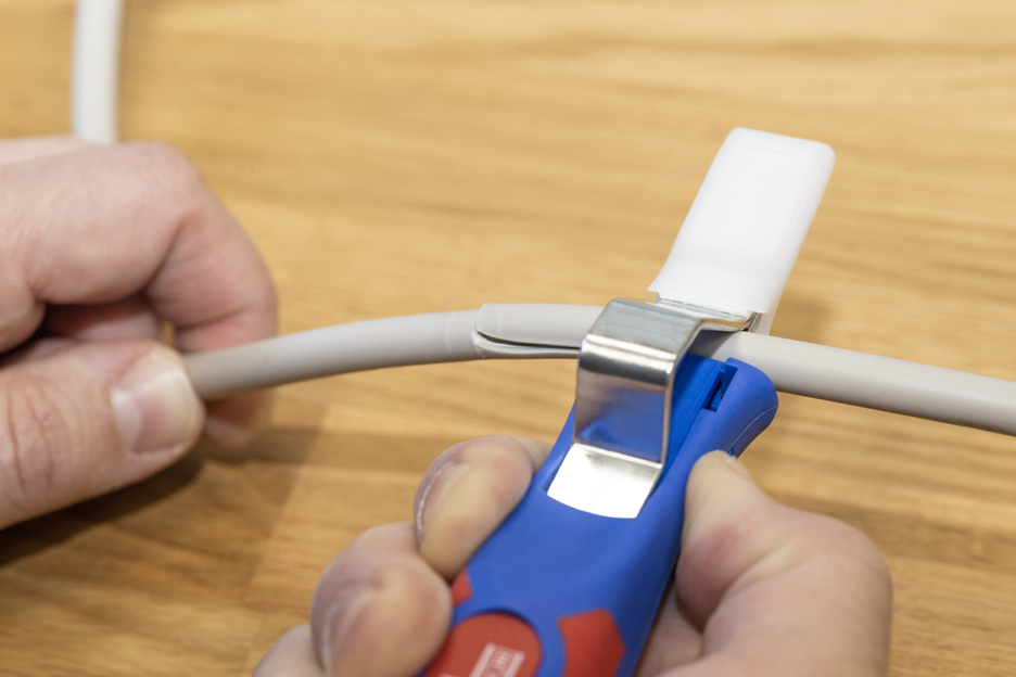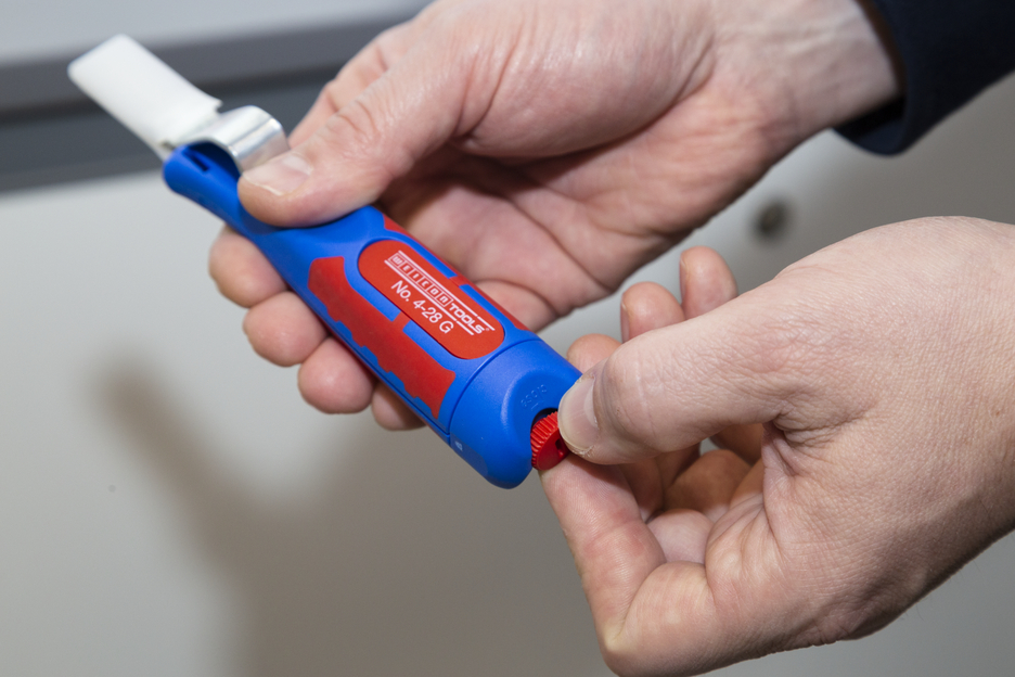 Duża średnica uchwytu zapewnia optymalny kontakt dotykowy. Płynnie regulowane i łatwe w obsłudze pokrętło nastawne. Precyzyjne, szybkie i bezpieczne ściąganie osłonek. Szybka wymiana wewnętrznych nożyków dzięki zamkowi bagnetowemu