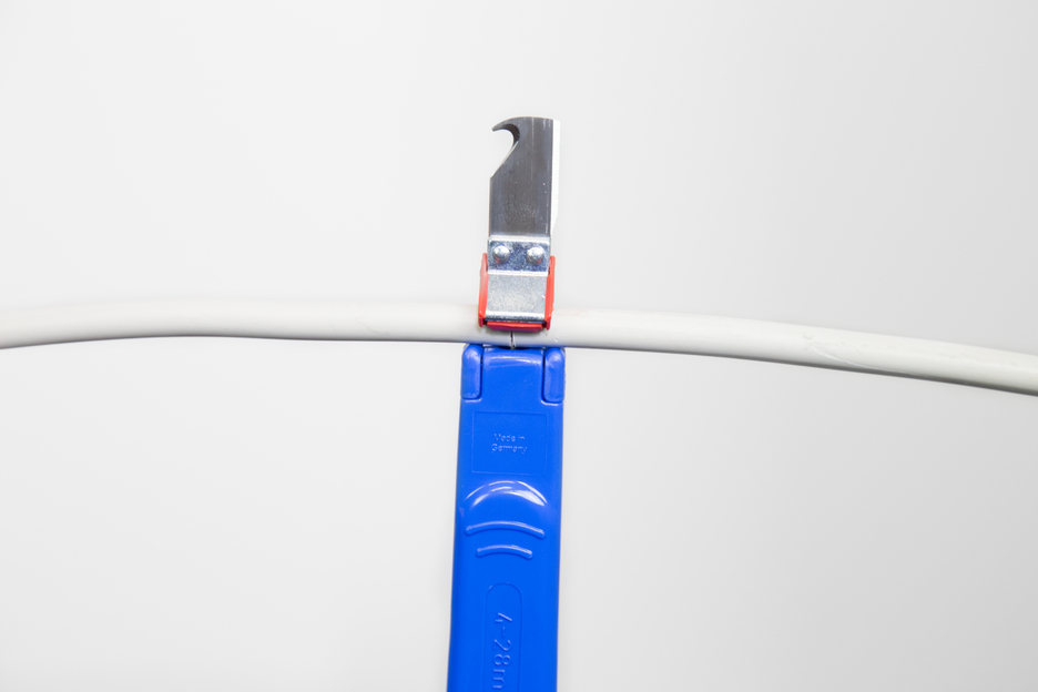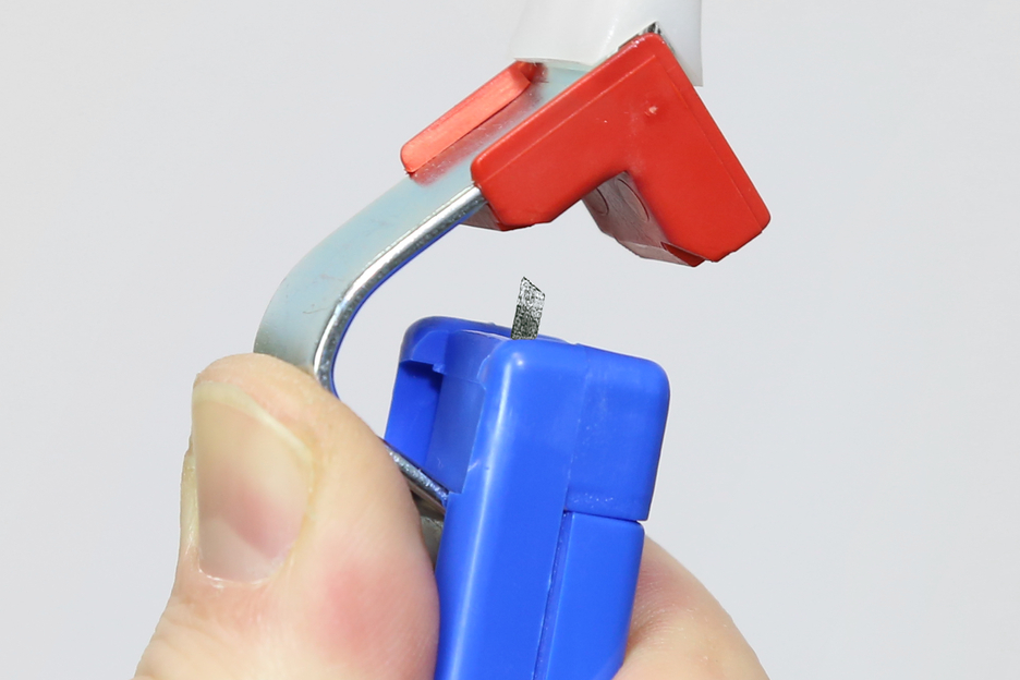 Płynnie regulowane i łatwe w obsłudze pokrętło nastawne. Precyzyjne, szybkie i bezpieczne ściąganie osłonek. Szybka wymiana wewnętrznych nożyków dzięki zamkowi bagnetowemu