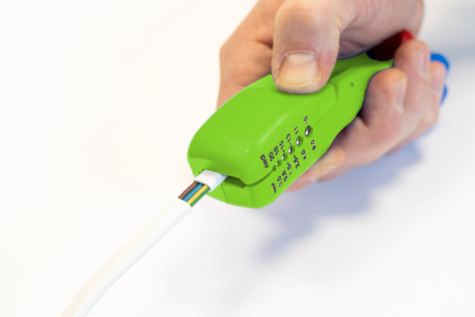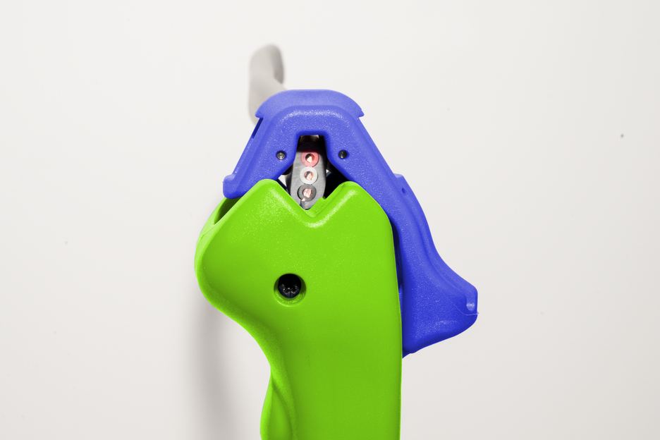 Nóż do kabli płaskich i okrągłych służy do szybkiego, precyzyjnego i bezpiecznego odizolowywania wszystkich standardowych kabli płaskich i okrągłych. Narzędzie zostało zaprojektowane do kabli płaskich o szerokości do 18 mm i kabli okrągłych o średnicy do 13 mm. Dzięki prowadnicy kabla na głowicy narzędzia jest bardzo łatwe wykonywanie cięć wzdłużnych - szczególnie na dłuższych odcinkach. Cięcia wzdłużne można wykonywać zarówno na kablach płaskich, jak i okrągłych. Pod głowicą znajduje się obrotowe ostrze wewnętrzne. Podobnie jak w przypadku wszystkich noży do kabli WEICON TOOLS, narzędzie może być używane do wykonywania cięć okrągłych i wzdłużnych na kablach okrągłych (od 6 do 13 mm) w jednej operacji. Regulacja głębokości ostrza odbywa się wygodnie i precyzyjnie w krokach od 0,1 mm do 3 mm za pomocą blokowanego pokrętła regulacyjnego. Zapobiega to uszkodzeniu głębszych warstw. Na spodzie tego poręcznego narzędzia zainstalowano dwa dodatkowe ostrza. Służą one do równoległego cięcia zewnętrznej osłony lub izolacji. Oznacza to, że zewnętrzną powłokę można łatwo usunąć nawet w bardzo ograniczonych przestrzeniach, takich jak puszki połączeniowe lub kanały kablowe. Specjalna konstrukcja narzędzia umożliwia zdejmowanie izolacji z dłuższych odcinków zarówno od strony czołowej, jak i nożnej. Kable płaskie o szerokości do 18 mm i okrągłe o średnicy do 13 mm mogą być z łatwością przeprowadzane przez narzędzie. Dodatkowa funkcja zdejmowania izolacji została wbudowana w dolną część obudowy narzędzia. Dzięki temu możliwe jest zdejmowanie izolacji ze wszystkich standardowych przewodów giętkich i litych o przekroju od 0,5 do 6 milimetrów kwadratowych.