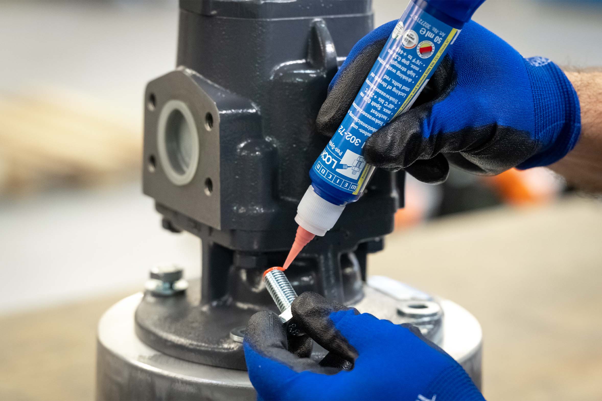 Zabezpieczanie śrub ma wiele zalet. Zapobiega poluzowaniu z powodu wibracji i zwiększa stabilność i niezawodność połączeń. Skraca to czas przestojów, poprawia bezpieczeństwo i zapobiega przedwczesnemu zużyciu. WEICONLOCK® AN 302-72 zabezpieczanie śrub i szpilek jest środkiem do zabezpieczania gwintów o wysokiej lepkości i wytrzymałości. Posiada dopuszczenie do kontaktu z wodą pitną, jest odporny na wysokie temperatury i trudny w demontażu. Jest to zatem idealne rozwiązanie dla wymagających zabezpieczeń przemysłowych i zastępuje podkładkę sprężystą oraz inne mechaniczne metody mocowania.