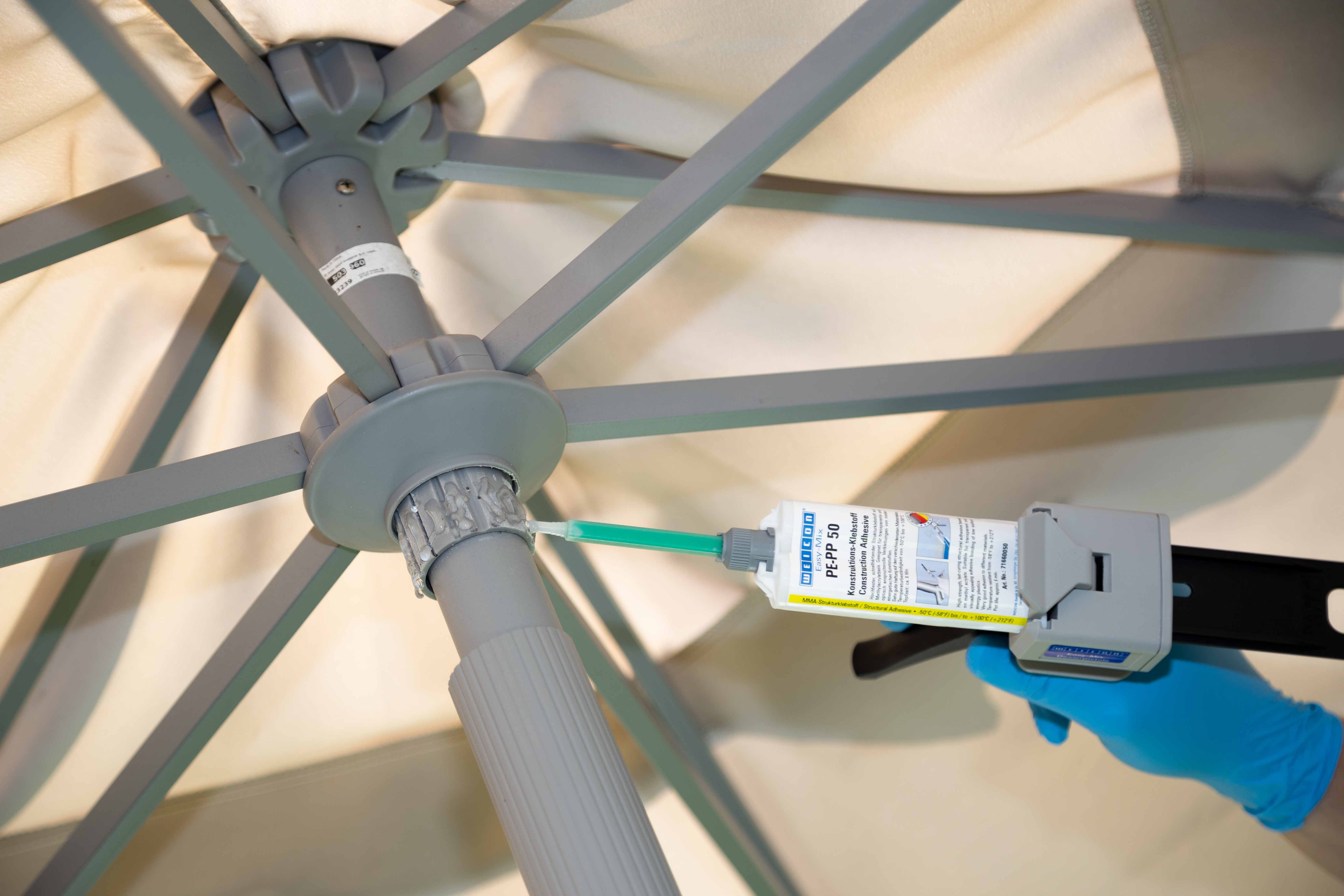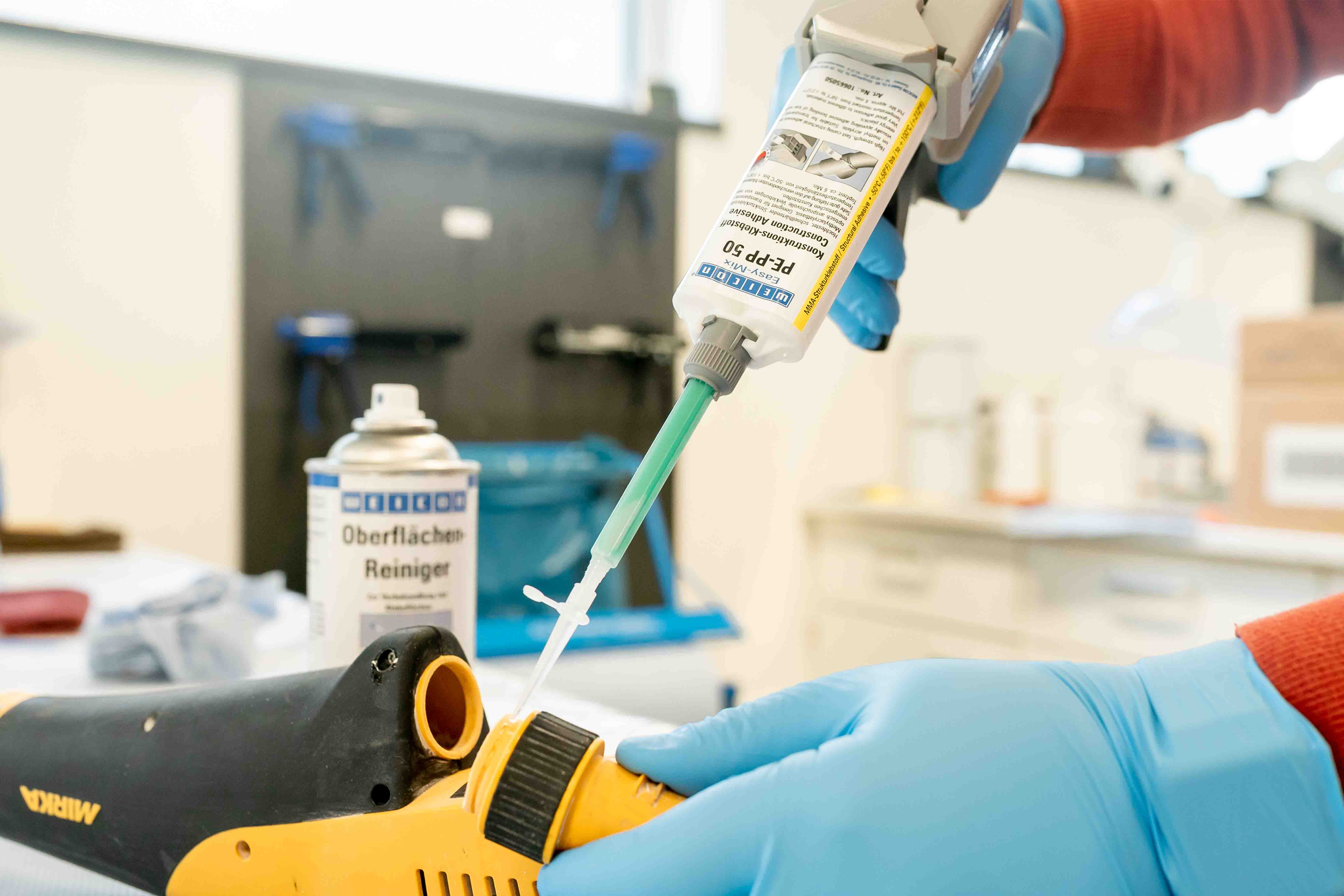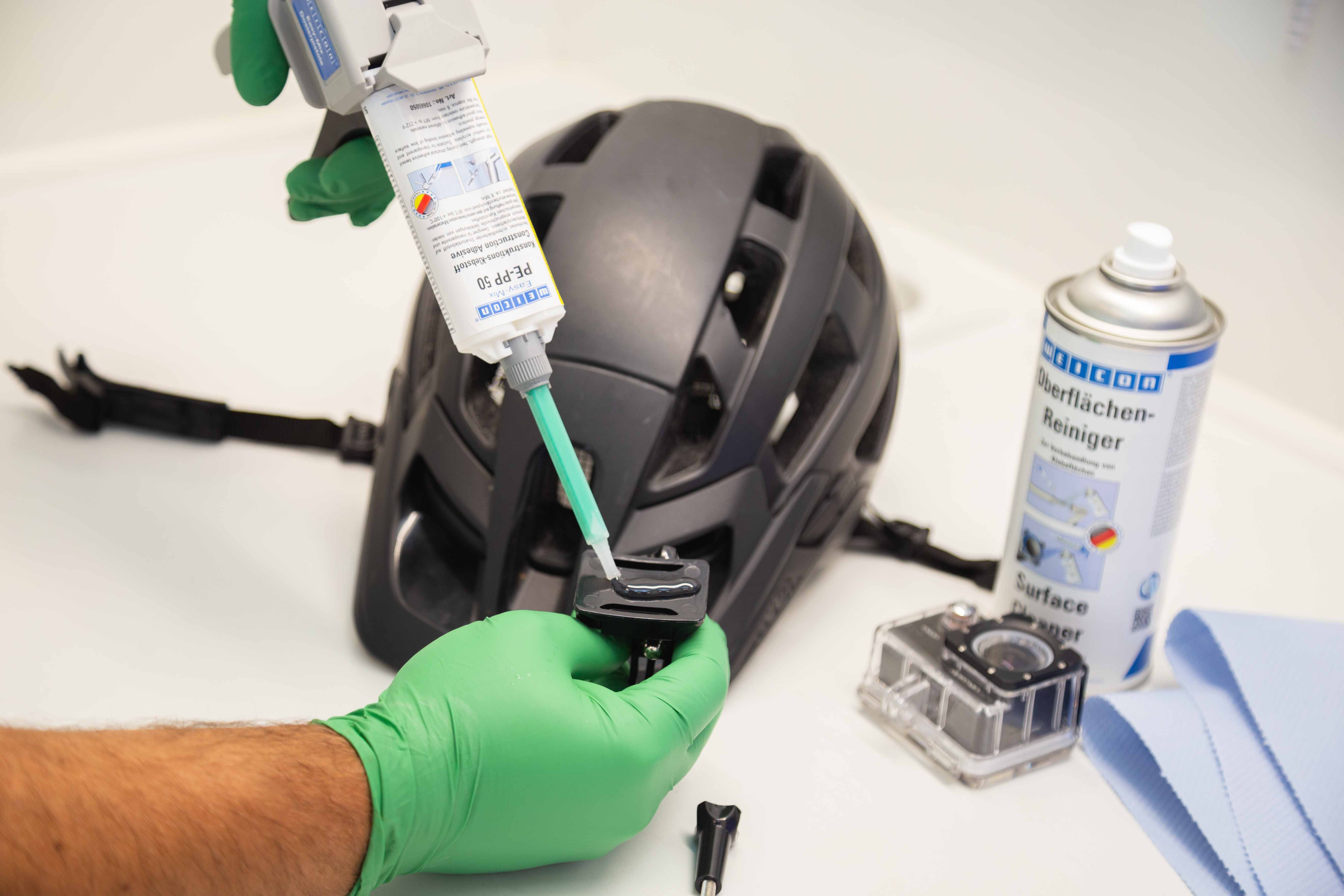 ✓ Wybór odpowiedniego kleju, np. WEICON Easy-Mix PE-PP 50 na bazie akrylanu metylu, WEICON Plastic-Bond lub jednego z naszych klejów błyskawicznych