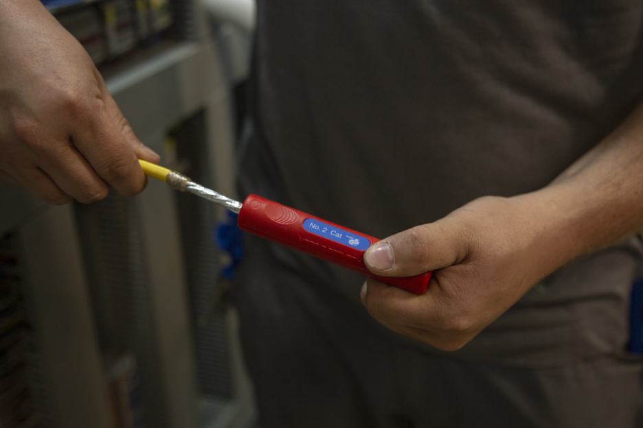 Stopniowane ściąganie izolacji z wszystkich powszechnie stosowanych kabli koaxialnych (np. Cat5, Cat6, Cat7, Twisted-Pair-Kabel). Nie jest potrzebne ustawienie głębokości cięcia. Nadaje się także do kabli elastycznych. Skala długości (0 - 17 mm) zintegrowana w obudowie.