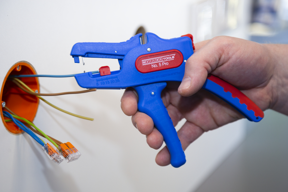Automatyczne szczypce służą do zdejmowania izolacji ze wszystkich standardowych przewodów elastycznych i litych o przekroju od 0,2 do 16 mm². Regulowany ogranicznik długości od 5 do 25 mm umożliwia bardzo precyzyjną i dokładną pracę. W razie potrzeby ogranicznik długości można również zdemontować. Szczypce automatycznie dostosowują się do odpowiedniego przekroju przewodu - nie jest więc wymagana ręczna regulacja. W szczypcach zintegrowano obcinak boczny, który nadaje się do przewodów miedzianych i aluminiowych o średnicy do trzech milimetrów. Dzięki smukłej konstrukcji narzędzia, szczypce mogą być również używane w trudno dostępnych miejscach pracy, takich jak szafy sterownicze. Mechanika szczypiec jest bardzo płynna i okazała się trwała i niezawodna w testach. Szczypce posiadają antypoślizgową, wielokomponentową rękojeść w niebiesko-czerwonym wzorze "ice-crack". Dzięki ergonomicznemu kształtowi rękojeści narzędzie wygodnie leży w dłoni i zapewnia pracę bez zmęczenia. Szczypce można również zablokować w miejscu, co pozwala na ich schowanie w celu zaoszczędzenia miejsca. Szczypce do ściągania izolacji mają oczko, do którego można przymocować pasek, aby zapobiec ich upadkowi, i są wyposażone w miejsce do etykietowania, dzięki czemu narzędzie można spersonalizować.