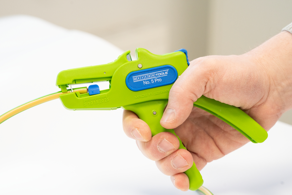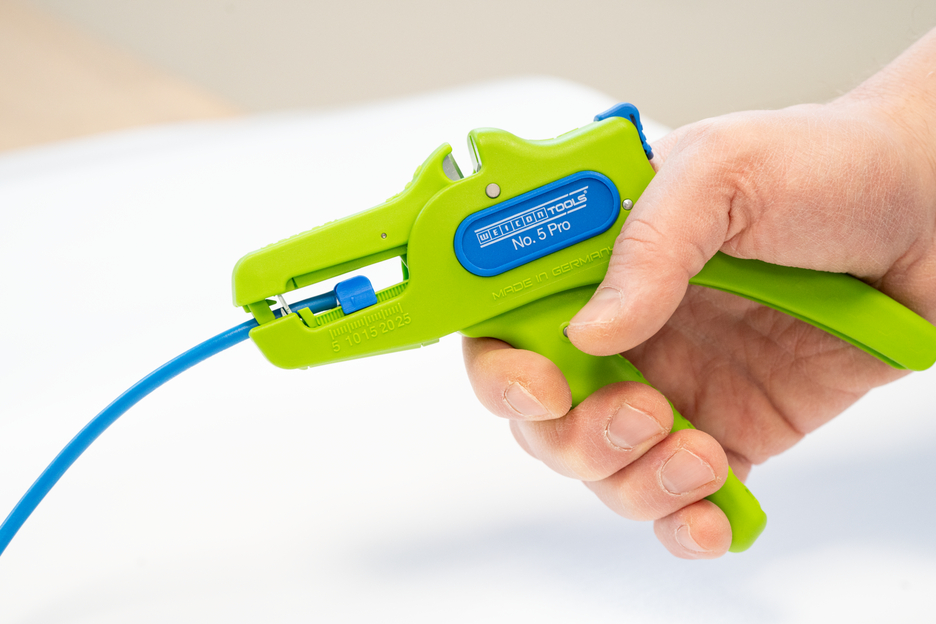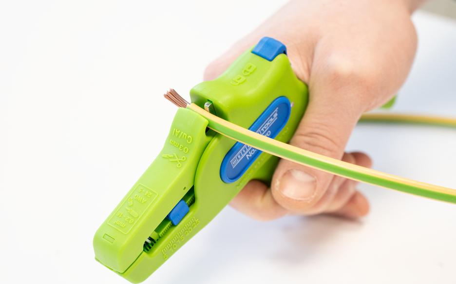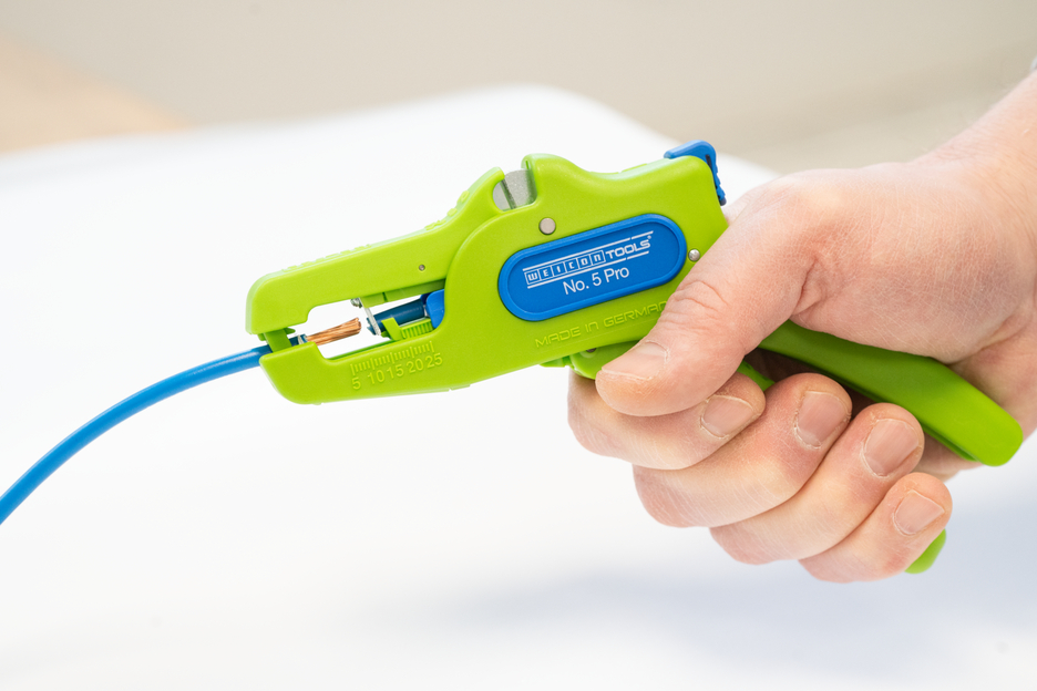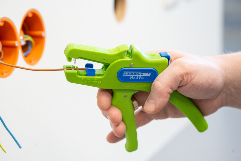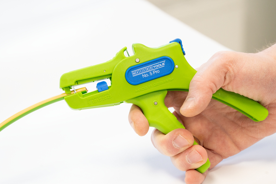 Automatyczne szczypce służą do zdejmowania izolacji ze wszystkich popularnych przewodów elastycznych i litych o przekroju od 0,2 do 16 mm². Regulowany ogranicznik długości od 5 do 25 mm umożliwia bardzo precyzyjną i dokładną pracę. W razie potrzeby ogranicznik długości można również wyjąć. Szczypce automatycznie dostosowują się do przekroju przewodu, dzięki czemu nie jest konieczna ręczna regulacja. W szczypcach zintegrowano obcinak boczny, który nadaje się do przewodów miedzianych i aluminiowych o średnicy do trzech milimetrów. Dzięki smukłej konstrukcji narzędzia szczypce mogą być używane również w trudno dostępnych miejscach pracy, takich jak szafy sterownicze. Mechanizm szczypiec działa bardzo płynnie i w testach wykazał się trwałością i niezawodnością. Szczypce mają antypoślizgowy, wieloskładnikowy uchwyt w niebiesko-czerwonym wzorze „Ice-Crack”. Ergonomiczny kształt uchwytu sprawia, że narzędzie dobrze leży w dłoni i zapewnia pracę bez zmęczenia. Dodatkowo szczypce można zablokować, co pozwala na ich kompaktowe przechowywanie. Szczypce do zdejmowania izolacji mają oczko, do którego można przymocować taśmę zabezpieczającą przed upadkiem, oraz powierzchnię do opisania, aby można było spersonalizować narzędzie.