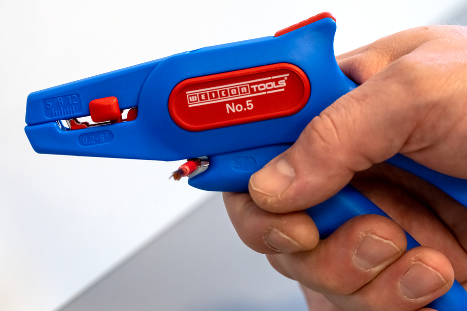 Oszczędność miejsca dzięki blokadzie szczypiec. Automatyczne szczypce do ściągania izolacji. Precyzyjna praca dzięki regulowanemu buforowi o długości (5 - 12 mm). Zintegrowany, łatwo dostępny boczny obcinacz do 2 mm Ø. Obszar roboczy: 0,2 - 6 mm²