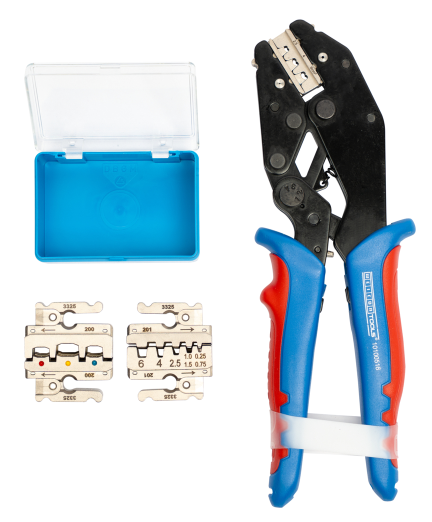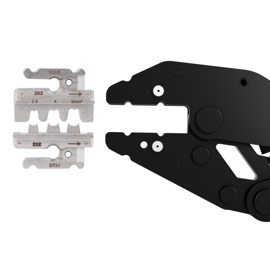 precise work thanks to ratchet mechanism with blocking device I process-safe crimping – tool only opens after the crimping process I emergency release in the handle (in the event of misuse) I set of 3: modules for MC4 connectors/insulated wire end ferrules/insulated cable lugs I modular Multi Change System for quick module changes I eccentric setting for adjusting the crimping force I comfortable feel thanks to 2-component handles