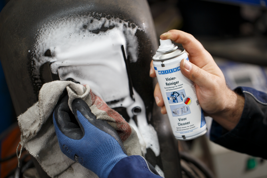 WEICON Visor Cleaner jest specjalistycznym produktem do czyszczenia i pielęgnacji delikatnych powierzchni z tworzyw i szkła. Jest antystatyczny, antyrefleksowy, redukuje zjawisko zaparowania i poprawia widoczność. WEICON Visor Cleaner delikatnie usuwa zabrudzeni a spowodowane przez owady, brud, kurz, smary, nikotynę nie pozostawiając śladu. Visor Cleaner może być stosowany w wizjerach, okularach ochronnych, tarczach spawalniczych, maskach ochronnych, sprzęcie sportowym, obudowach maszyn, skanerów i drukarek oraz wszystkich powierzchniach ze szkła i tworzyw.