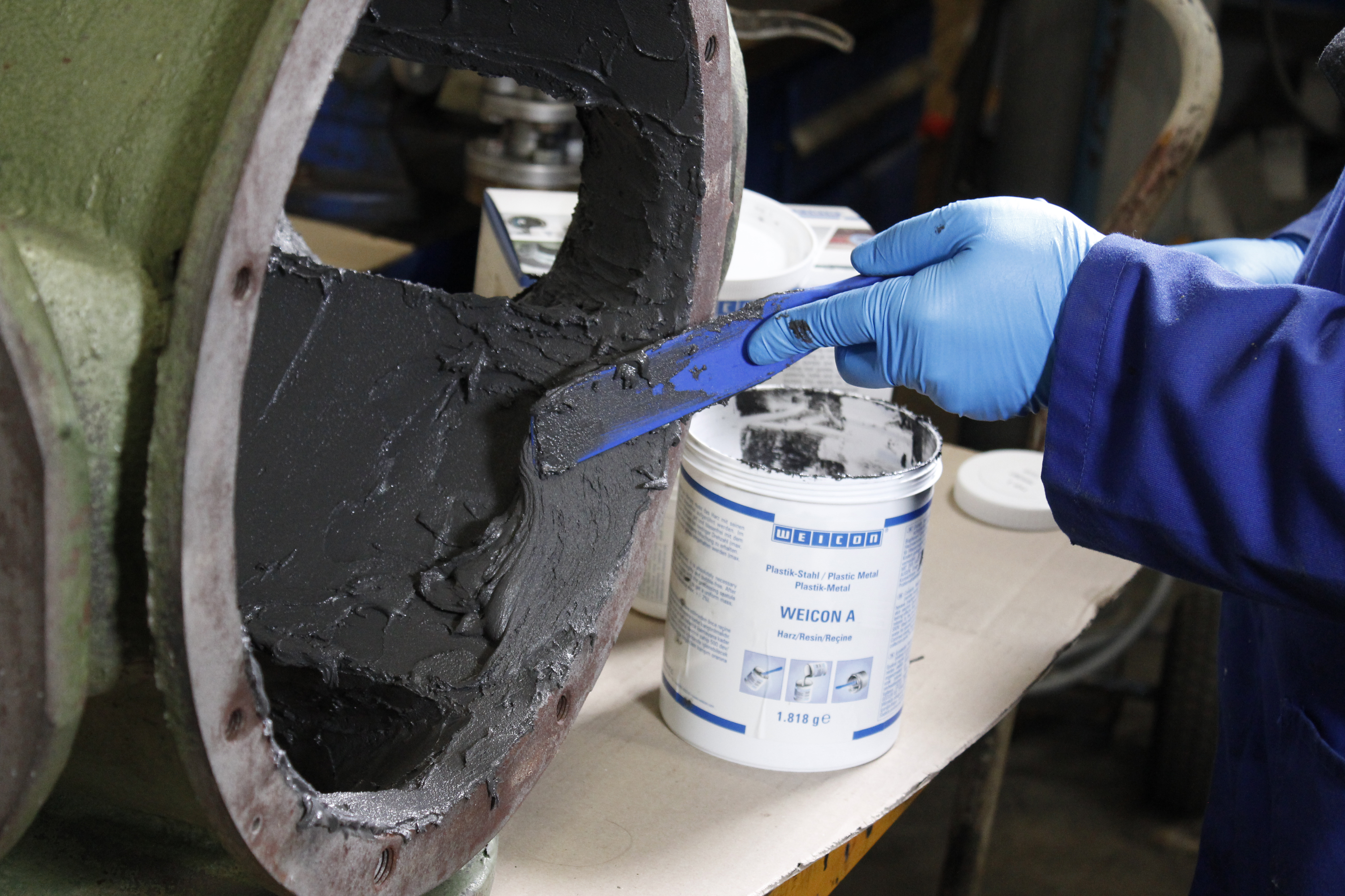 WEICON A posiada certyfikat DNV i jest szczególnie przydatny do prac remontowych i konserwacyjnych w przemyśle morskim. System żywic epoksydowych jest bardzo dobrze wypełniony pigmentami stalowymi, jest magnetyczny i tak pastowy, że może być stosowany na powierzchniach pionowych. Może być stosowany do usuwania uszkodzeń spowodowanych korozją i wżerów lub do naprawy otworów i szczelin. Na przykład, może być używany do reprodukcji ciężkich elementów stalowych, które zostały poważnie uszkodzone przez korozję i wżery. WEICON A jest prawdziwą alternatywą do spawania wspomagającego, ponieważ obróbka żywicy epoksydowej nie powoduje odkształceń termicznych jak przy spawaniu. Dwuskładnikowy system może być stosowany do naprawy zbiorników i rur oraz do naprawy pęknięć w obudowach silników lub pomp i elementów maszyn. Idealnie nadaje się do stosowania w systemach kanalizacyjnych, gdzie rury i przewody są narażone na silne oddziaływanie mediów. Dalsze przykłady zastosowań to produkcja modeli, form, narzędzi i urządzeń mocujących. WEICON A znajdują zastosowanie w mechanice, produkcji narzędzi, form i modeli oraz wielu innych działach przemysłu.
