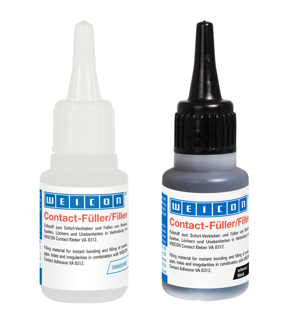 Wypełniacz na bazie tlenku krzemu opracowany specjalnie do klejów cyjanoakrylowych WEICON do wypełniania większych szczelin klejowych powyżej 0,1 mm oraz do wypełniania pęknięć, szczelin, otworów i nierówności. Oznacza to, że Contact Filler w połączeniu z Contact Cyanoacrylate Adhesive nadaje się nie tylko do klejenia, ale także do wzmacniania, kształtowania, modelowania, mocowania, wypełniania, a także do wyrównywania i niwelowania.